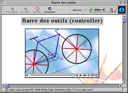- le fichier HTML de description de la page Web indique qu'une zone rectangulaire sera contrôlée par un programme Java dont le J-code est placé sur le Web sous forme de fichiers .class ou d'archive compressée .jar